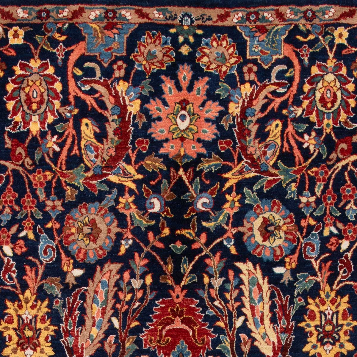 Contemporary Handmade RugDesign: —Origin: KashmarMaterial: Handspun wool pile, Cotton warpWeaving Technique: 30 (±2) KnotsAge: 2024 (Year of Production)