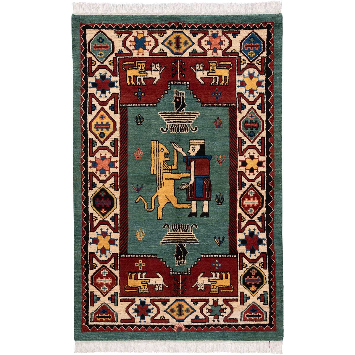 Contemporary Handmade RugDesign: —Origin: KashmarMaterial: Handspun wool pile, Cotton warpWeaving Technique: 30 (±2) KnotsAge: 2024 (Year of Production)