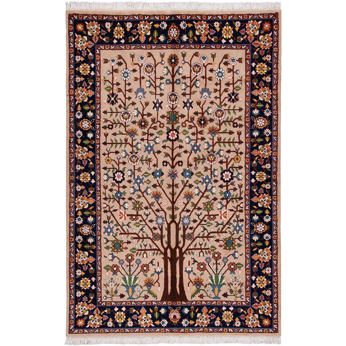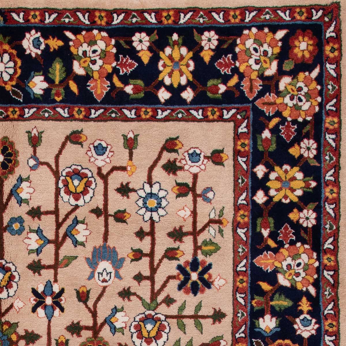 Contemporary Handmade RugDesign: —Origin: KashmarMaterial: Handspun wool pile, Cotton warpWeaving Technique: 25 (±2) KnotsAge: 2024 (Year of Production)