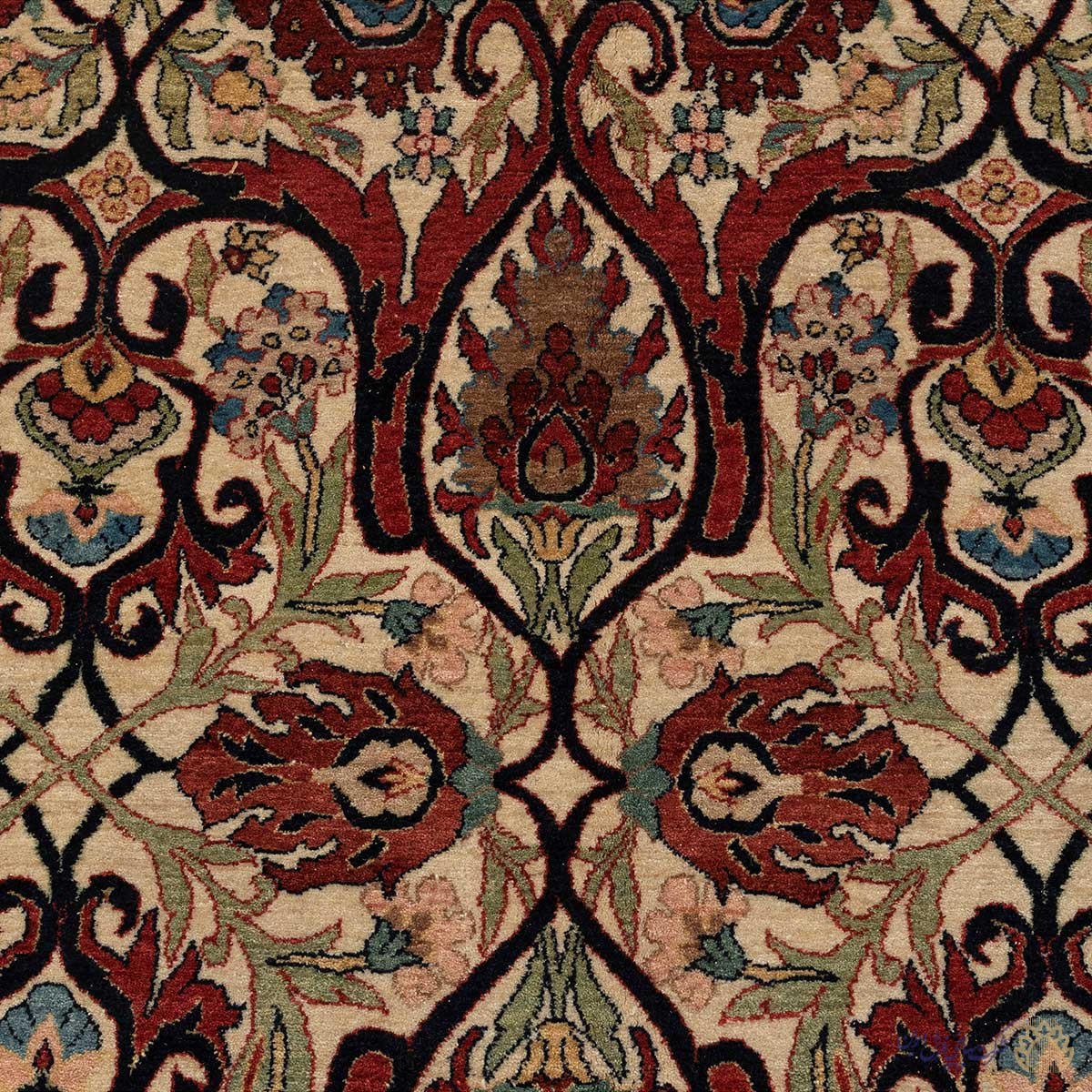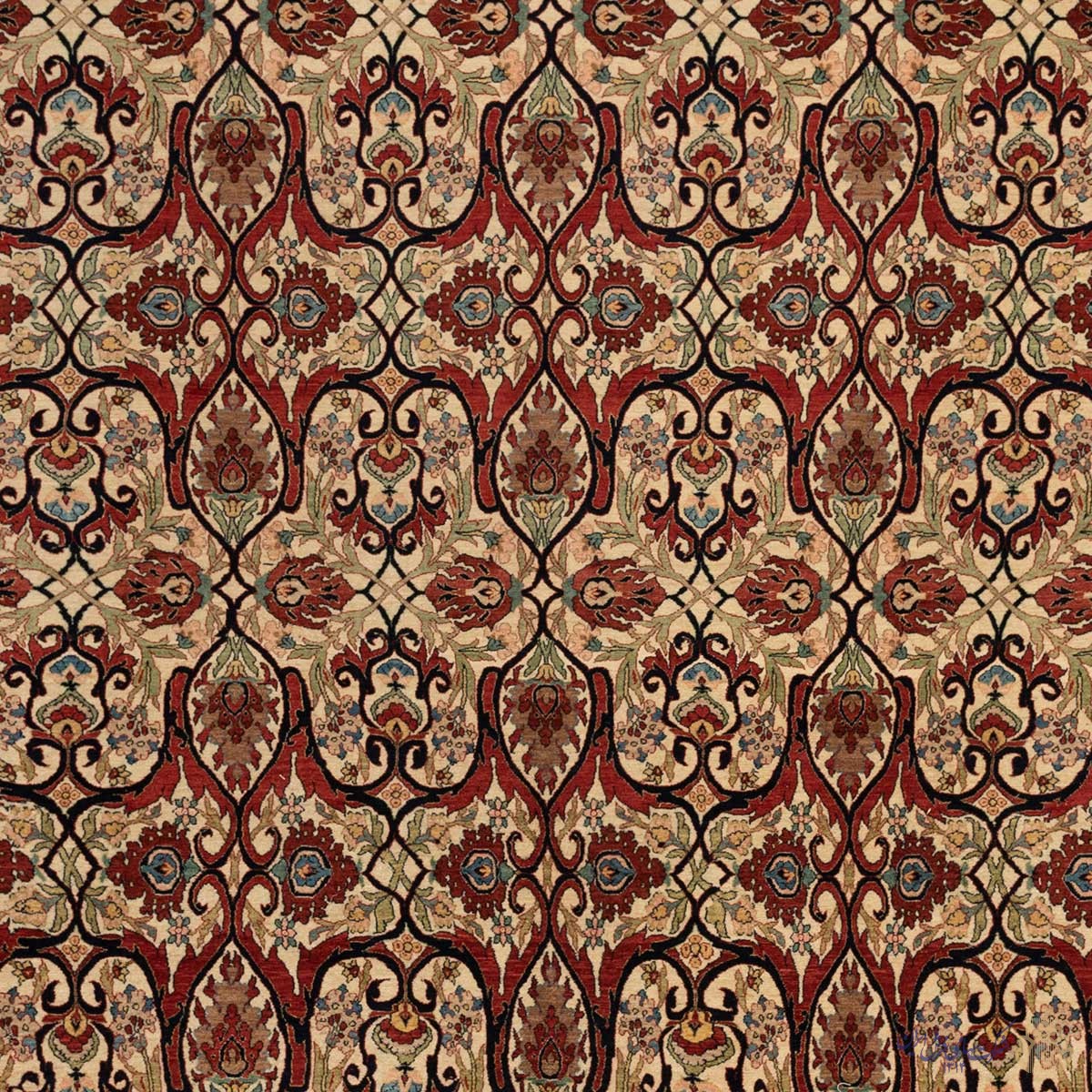 Material: Wool pile, Silk warp, Cotton weft