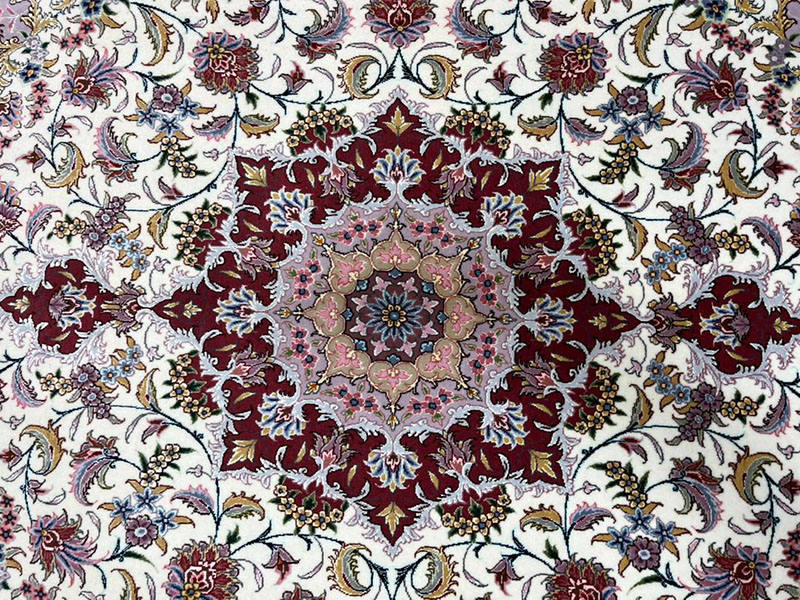 Weaving technique: 53 Knots per 7.5 cm, which indicates a finely woven rug